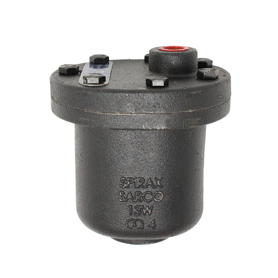 There are two main series of Spirax Sarco Air Eliminators: 13WS and AE30. The Spirax 13WS Air Eliminator series features a cast iron body with stainless steel internals and a EPDM valve head, with a brass body option available. The standard 13WS series is rated for 150 psig, while the 13WHS series is rated for 300 psig. The Spirax Sarco AE30 Air Eliminator series features a brass body with stainless steel, rubber and plastic internals and is rated up to 116 psig. The AE30A model also includes a check valve in the outlet orifice.