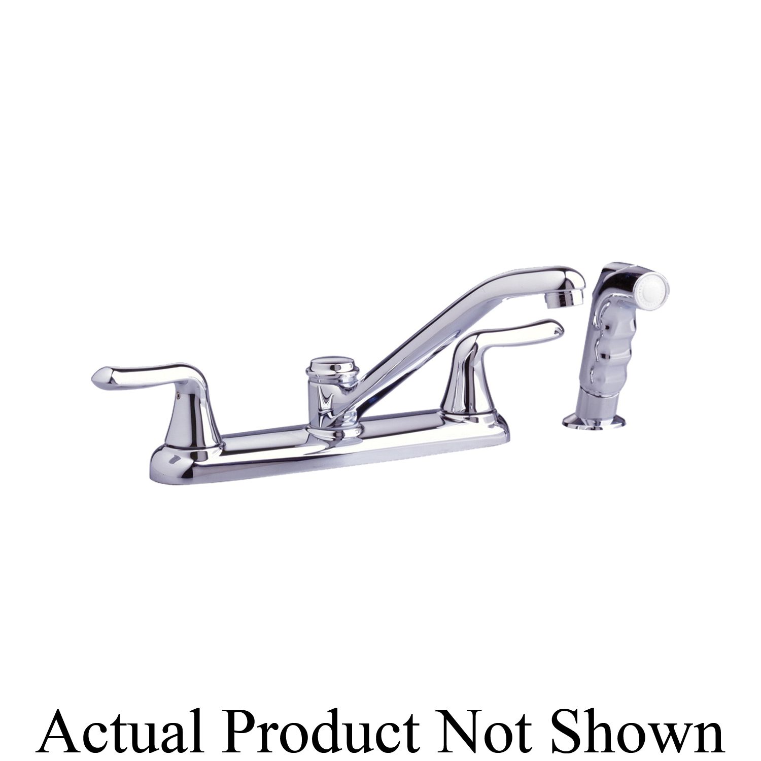American Standard, 4275501.002, Colony® Soft Collection, 2.2 gpm Flow Rate, 8 in Center Distance, Swivel Spout, 8-1/4 in Spout Reach, 5 in Spout Height, Lever Handle, 2 Handles, Side Spray(Y/N): Yes, 4 Faucet Holes, 1 in Maximum Deck Thickness, Deck Mounting, Washerless Ceramic, 6 in H Dimensions, Brass, Polished Chrome, Import