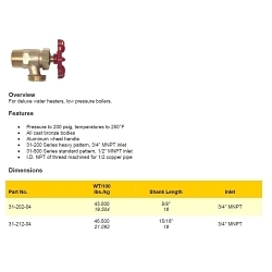 Apollo™ Drain Valve, Heavy Pattern 90 deg, Series: 31-200, 3/4 in Nominal, MNPT End Style, 200 psig Pressure, 250 deg F, Handwheel Actuator, Cast Bronze Body, Domestic