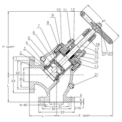 CRANE® Angle Stop Check Non-Return Valve, Series: 30E, 10 in Nominal, Flanged, 250 lb, Ductile Iron Body, Bronze Trim, Die-Formed Compressed Graphite Packing