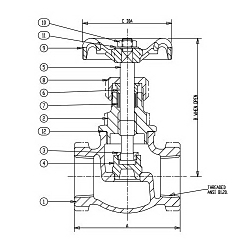 CRANE® Globe Valve, Series: 382P, 1 in Nominal, Thread End Style, 300 lb Pressure Class, Handwheel Actuator, 3-1/2 in Inlet to Outlet Length, 5.59 in Top to Inlet Center, Bronze Body, Bronze Trim, Graphite Asbestos Free Packing/Synthetic Glass Fiber with Nitrile Binder Gasket Softgoods, 3-1/2 in Diameter Hand Wheel
