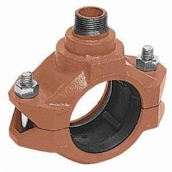 Gruvlok® Branch Outlet Coupling, Series: FIG 7042, 3 x 1 in Nominal, MNPT, 500 psi, -40 to 150 deg F, 1/2 x 3 in Bolt, 304 Stainless Steel Bolt, Ductile Iron Clamp, Grade E Gasket, 7-1/4 in W x 3-1/4 in D, Rust Inhibiting Painted, Import