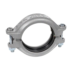 The SlideLOK® coupling is the most rigid ready for installation coupling designed to reduce installation time. The slide action eases assembly and reduces installation time. The patented gasket provides four separate sealing surfaces for added protection. The SlideLOK® coupling is designed to be used with roll groove or cut groove steel pipe, grooved light wall pipe, Gruvlok® grooved-end fittings, and valves. The SlideLOK® coupling allows for a maximum working pressure of 750 psi on roll or cut grooved carbon steel standard wall pipe. The SlideLOK® coupling provides a rigid connection allowing pipe hanging practices per ASME B31 Pipe Codes.