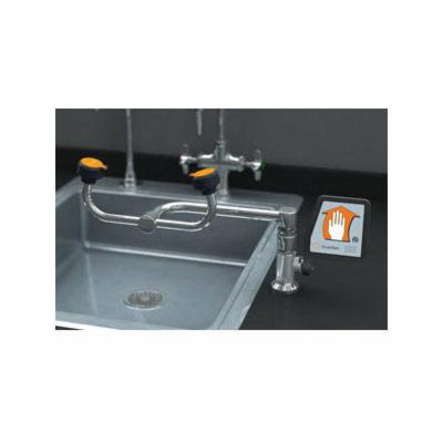 Application: Eyewash for Mounting on Counter Next to Sink, Spray Heads Swivel 90 deg from Storage to Operational Position, Water Flow is Activated by Flag Handle