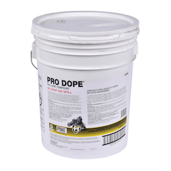 A versatile thread sealant for use on black iron, galvanized steel, copper, brass and aluminum pipe and fittings. Can be used on lines carrying natural gas, air, steam, hydronic heating, ammonia, brine, diluted acids and sprinkler systems. Pro Dope® will not drip, is lead free, non-toxic and wont spill. It is non-separating and provides a tight, positive, leak free seal. Pro Dope® prevents rust and inhibits corrosion by forming a protective coating on threads. It is non-hardening and joints can be disassembled without damage to pipe fittings or threads. Pro Dope® is easily applied with a natural bristle brush in temperatures as low as -15 deg F and performs over a temperature range of 0 to 350 deg F. Pressure rated to 250 psi for liquids and 200 psi for air/steam. Pro Dope® is a grey colored thread sealant which contains no lead.