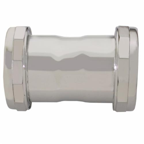 Jones Stephens™ Pipe Coupling, Double, 1-1/2 in Slip Joint Nominal, 22 ga Gauge, Brass, Polished Chrome, 3 in L x 2 in W Dimensions
