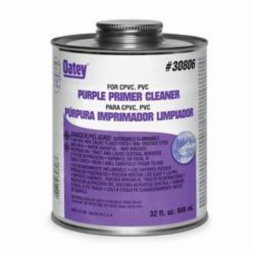 Oatey® Pipe Primer/Cleaner, All Purpose, 32 oz, Can, 2.03 lb Net Weight, Translucent Liquid, Purple, Solvent, 180 g/L VOC, -4 deg F Flash, Composition: Acetone, Cyclohexanone, 0.79 Specific Gravity