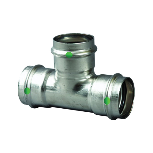 ProPress® Pipe Tee, Fitting/Connector Type: Tee, Series: Model 4018, 1-1/4 in Nominal, Press, 200 psi, 0 To 250 deg F, 316 Stainless Steel, EPDM Seal, Import