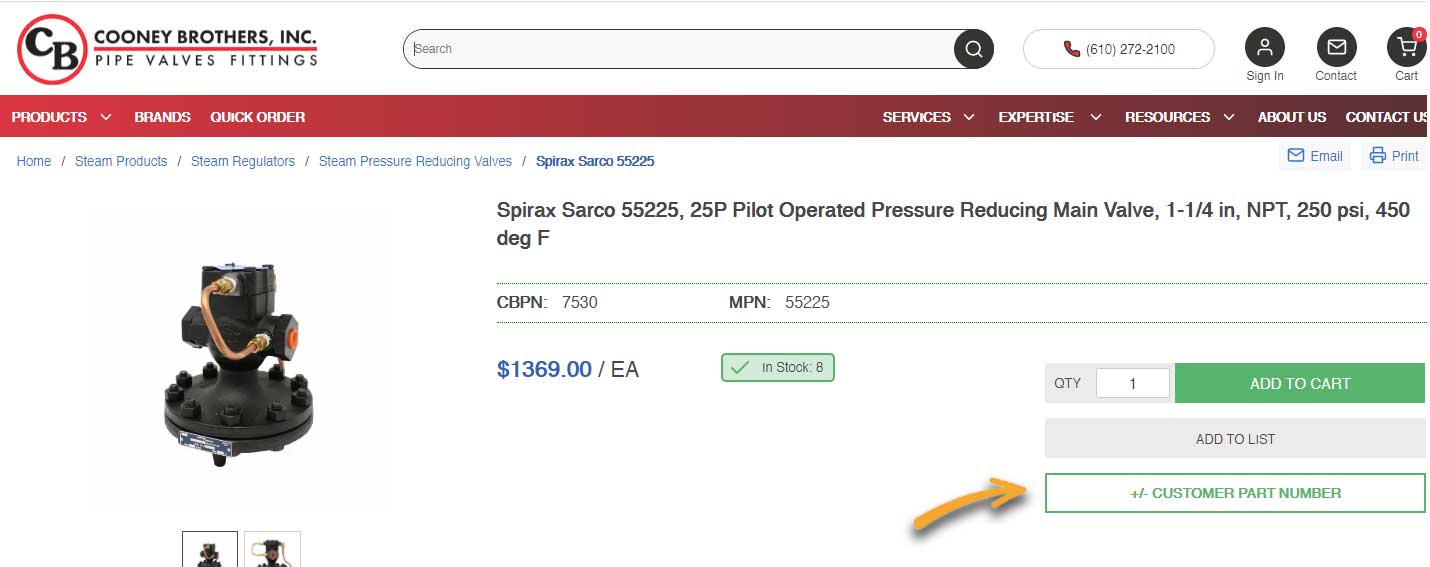 Customer part numbers can also be uploaded in bulk. If Cooney Brothers currently uses your part numbers on orders, they can easily be uploaded for use on the website, as they are already stored in our ERP.