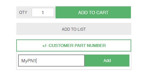 The website will now recognize your part number anywhere a part number can be entered. Entering it in the search bar will find the product, as will using it to enter a Quick Order.
