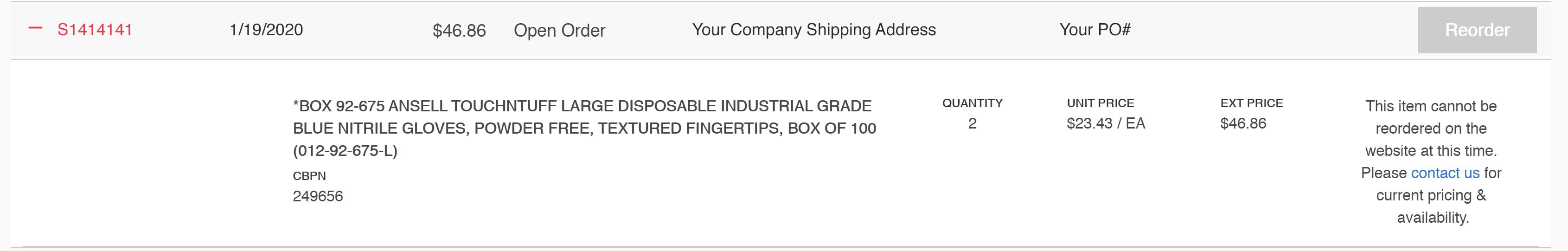 You can identify these items by a few characteristics: there is no image displayed on the left, and there is a note under the Reorder button which reads "This item cannot be reordered on the website at this time. Please contact us for current pricing & availability." and the Reorder button remains grayed out. To request updated pricing and availability, fill out the simple form. You will receive a confirmation email, and a member of the Cooney Brothers sales team will get back to you shortly with updated pricing.