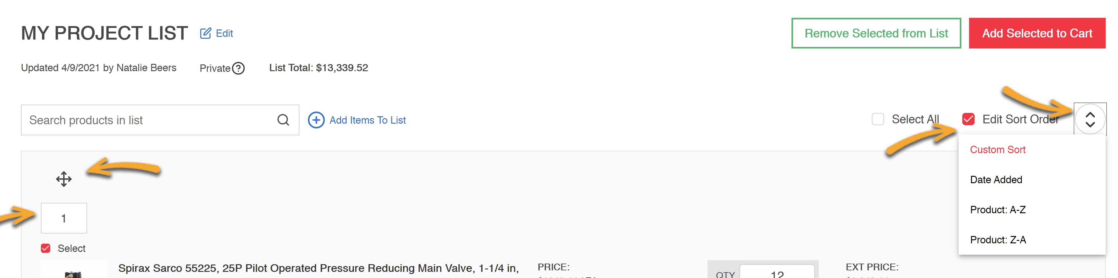 Ordering from your List is a breeze. You can easily update the Quantity for each item you want to buy, select the lines you need (or hit the “Add List to Cart” button to add all items) and click the “Add Selected From List” button. From there, you can either continue shopping or proceed to checkout.
