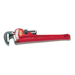 RIDGID® Pipe Wrench, Heavy Duty Straight, 1-1/2 in Pipe, 10 in Overall Length, Serrated Jaw, Steel Jaw, I-Beam Handle, Cast Iron Handle