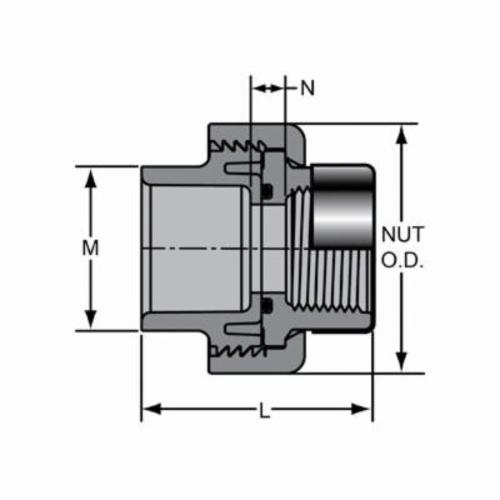 Spears® Union, Fitting/Connector Type: Union, 2 in Nominal, Socket x Special Reinforced FNPT, 3 in Length, SCH 80/XH, 235 psi, Molded, CPVC, EPDM O-Ring Seal, Gray, 73 deg F, Domestic