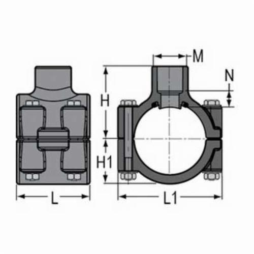 Spears® Pipe Saddle, Clamp-On, 2 x 1-1/2 in Nominal, 1-Socket, 1-1/2 in Hole Dia, SCH 80/XH, 235 psi, 73 deg F, Stainless Steel Bolt, PVC Clamp, 3-7/16 in W, Gray, Domestic