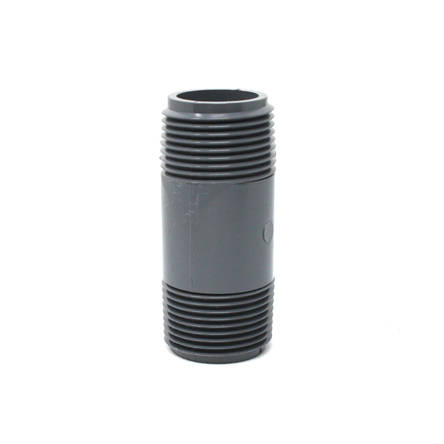 PVC/CPVC/PE nipples furnished may be produced from extruded stock, or from molding grade PVC/CPVC compounds. Both processes provide quality products meeting ASTM requirements. Spears® thermoplastic nipples are produced in a variety of styles, several of which are illustrated below. These are referred to as Plain (no threads), TOE (Threaded One End), TBE (Threaded Both Ends), Grooved (which can be Plain x Groove, Groove x Thread, & Groove x Groove). Special varieties of polyethylene nipples include Cut-off, Four-In-One Cut-off and Four-In-One Cut-off Reducing. Close nipples are simply two (2) threads back to back. Short nipples is a term commonly used to designate a slightly longer nipple that is usually the smallest length above "close". The following table shows length of close and short nipples.