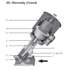 A 2-port pneumatically actuated on/off bronze valve for use on water, air, oil and gases. It can also be used on lower specification steam applications. A pneumatic signal acts on the actuator piston to open or close the valve with a spring return action. The valve plugs have a PTFE soft seal (G) to provide a tight shut-off. A valve position indicator is included on standard and flow regulator models.