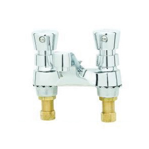 T & S Self-Close Centerset Lavatory Faucet, 2.2 gpm Flow Rate, 4 in Center Distance, Integral Spout, 3-3/4 in Spout Reach, 1-7/16 in Spout Height, Pushbutton Handle, 2 Handles, 1/2 in Connection, NPSM Connection, Spray Pattern: Aerated, 3/4 in Maximum Deck Thickness, Deck Mounting, Metering Cartridge, 5-7/8 in W x 3-7/16 in H, Brass, Polished Chrome, Domestic