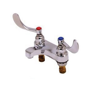 T & S Centerset Medical and Lavatory Faucet, Manual, 2.2 gpm, 4 in Center Distance, Cast Basin Spout, 3-3/4 in Spout Reach, 1-7/16 in Spout Height, Lever Handle, 2 Handles, 1/2 in, NPSM, Spray Pattern: Aerated, 3/4 in Maximum Deck Thickness, Deck Mount, Compression Valve/Cartridge, 5-7/8 in W x 4-15/16 in H, Brass, Polished Chrome, Domestic