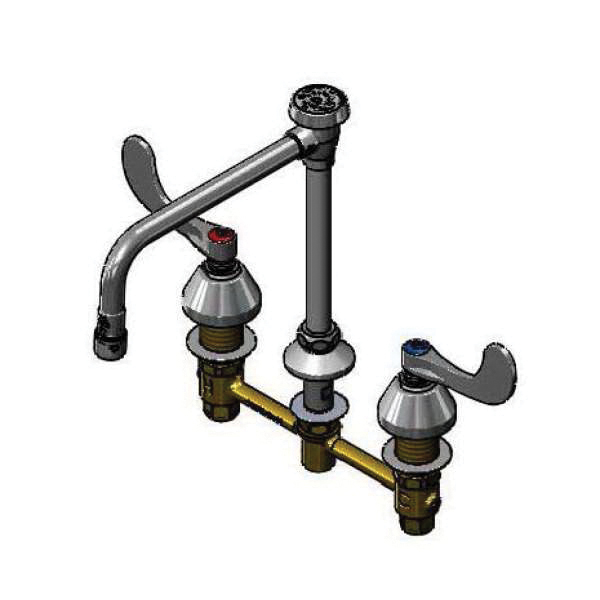 T & S Concealed Widespread Lavatory Faucet, 2.2 gpm Flow Rate, 8 in Center Distance, Swivel Spout, 8-5/8 in Spout Reach, 4-5/8 in Spout Height, Lever Handle, 1/2 in Connection, MNPT Connection, Spray Pattern: Aerated, 1-1/4 in Maximum Deck Thickness, Deck Mounting, Spring Check Valve/Quarter Turn Eterna Compression Cartridge, 16 in L x 9-7/16 in H Dimensions, Forged Brass, Polished Chrome
