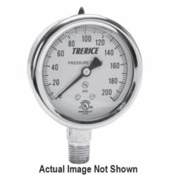 Trerice Industrial Pressure Gauge, Series: D80, 0 to 300 psi, 1/4 in MNPT, 2-1/2 in Dial Diameter, +/- 1.6 % Accuracy, Liquid Filled: Glycerin, 150 deg F, Lower Mount, 304 Stainless Steel Case, 2.68 in Dia x 1.18 in D